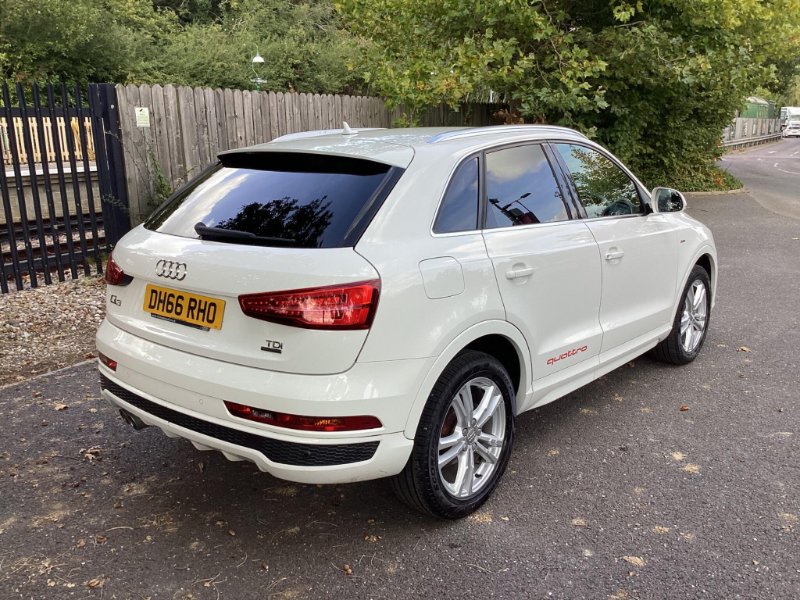 This 2017 Audi Q3 TDI S line presents an exceptional opportunity with its remarkably low mileage of just 69,153 miles for its age, complemented by a full service history and a 12 month warranty for your peace of mind. This Four Wheel Drive model, featuring a 2.0 litre diesel engine, meets Euro 6 emissions standards. It comes equipped with All Weather LED Headlights, Rear Parking Sensors, and a Light and Rain Sensor for enhanced visibility and convenience. Inside, you'll find a Bluetooth Interface for seamless connectivity and Dual-Zone Electronic Climate Control to ensure comfort for all occupants. A 12 month MOT will be provided on purchase, ensuring its roadworthiness.