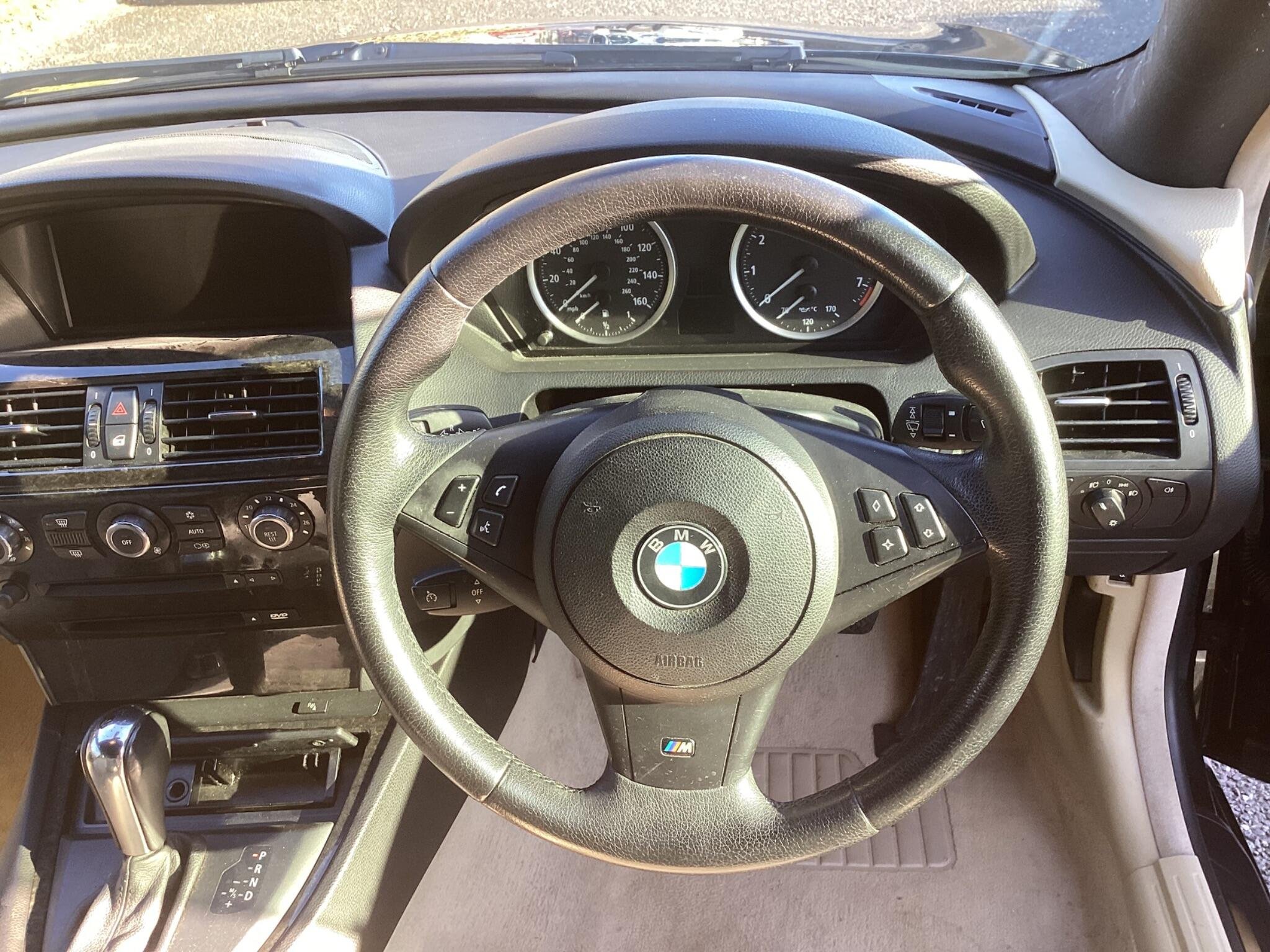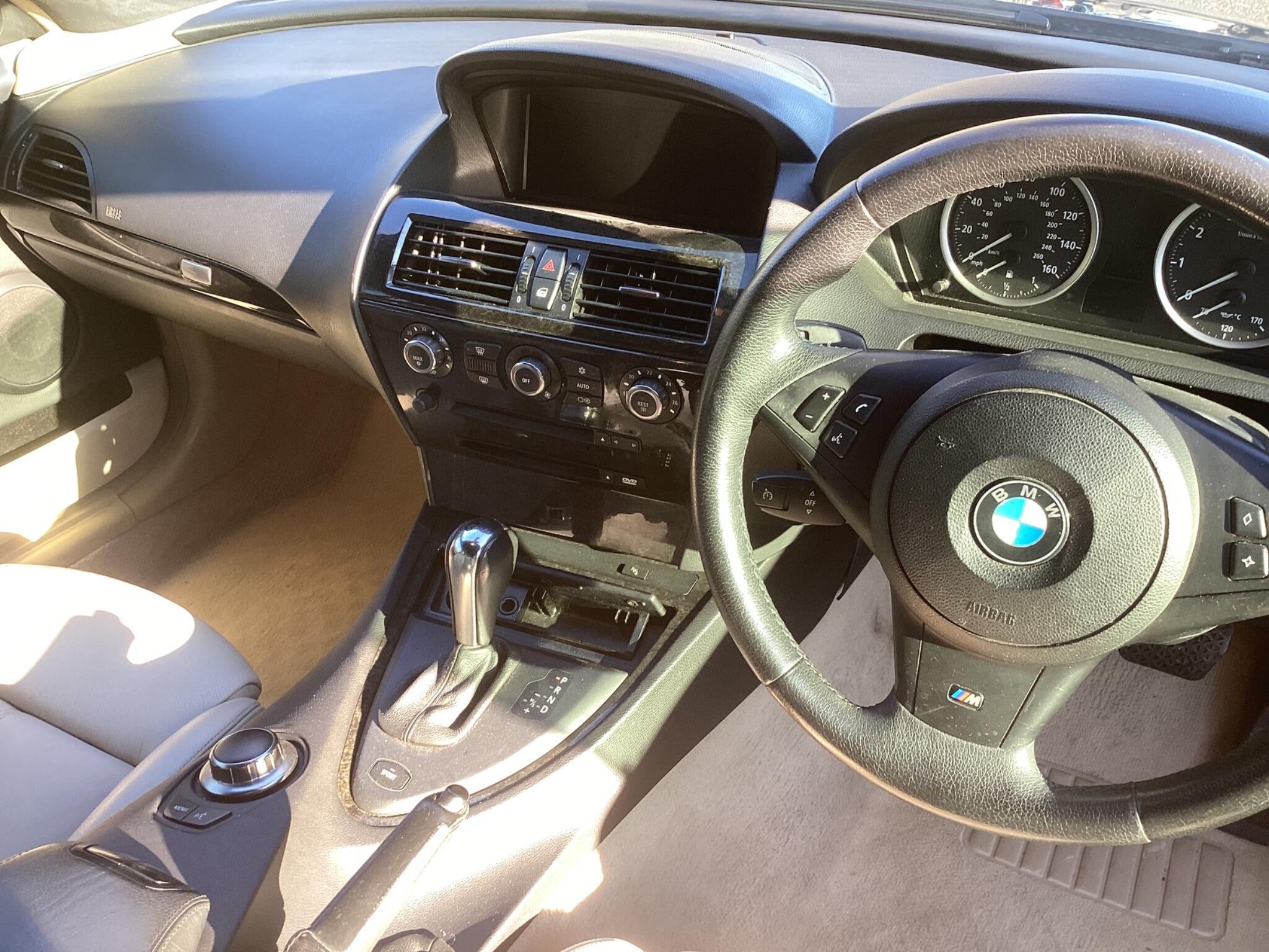 This 2006 BMW 6 Series 630i Sport boasts a full dealership service history, offering peace of mind for its next owner. This striking Sport trim model is powered by a smooth 3.0 litre petrol engine and comes with a 12 month warranty for added security. You will also receive 12 months MOT upon purchase, ensuring its roadworthiness. Inside, you'll find the Professional SatNav system, complete with an MP3 player for your entertainment on the go.