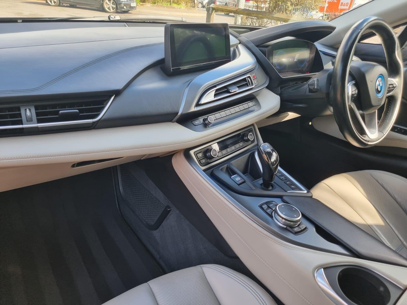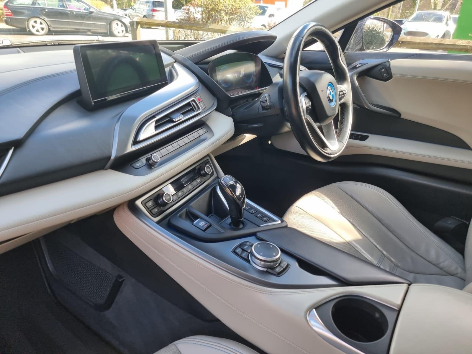 This 2016 BMW i8 boasts a full service history, ensuring its excellent provenance and offering peace of mind with an 18 month warranty. Under the bonnet, it features a 1.5 litre petrol plug in hybrid engine, paired with four wheel drive for dynamic performance. This Euro 6 compliant model comes with 12 months MOT provided on purchase. Inside, you'll find the sophisticated Carpo Carum Grey Interior World, complemented by Adaptive LED Headlights with High Beam Assistant and a Comfort Access System for keyless entry. The enhanced Bluetooth telephone preparation with USB audio interface further adds to the convenience.