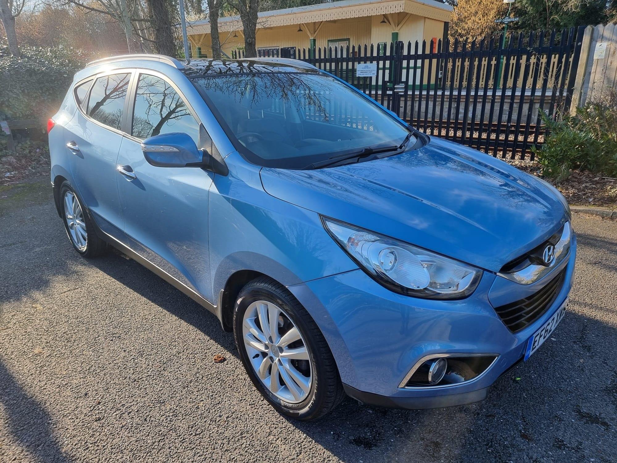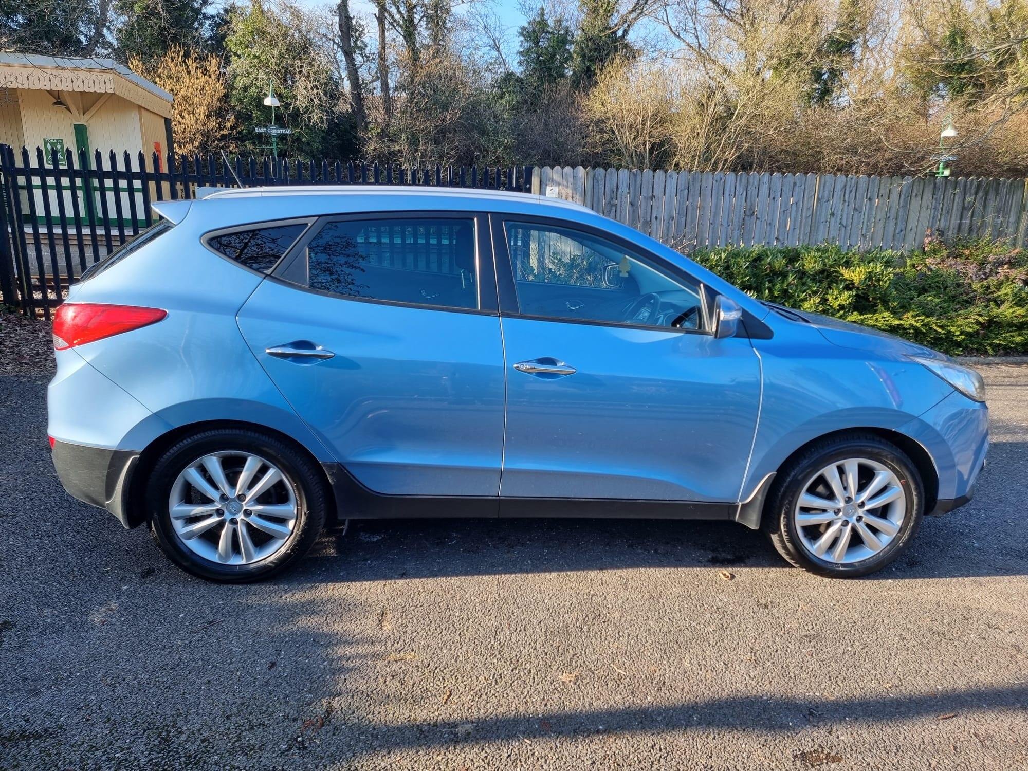 This 2012 Hyundai ix35 CRDi Premium offers peace of mind with an 18 month warranty and a full service history. This Four Wheel Drive model is powered by a 2.0L Diesel Engine and comes with 12 months MOT provided on purchase. Inside, you will find a dual zone climate control system with a humidity sensor and ioniser, automatic headlights, and rear parking sensors for added convenience. Stay connected on the go with Bluetooth connectivity featuring voice recognition, and enjoy the open air with the electric tilt and slide panoramic sunroof.